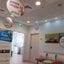 クリニック内の待合室。「予防接種して勝つ」「私もコロナ予防接種済」等の標語(筆者提供)
