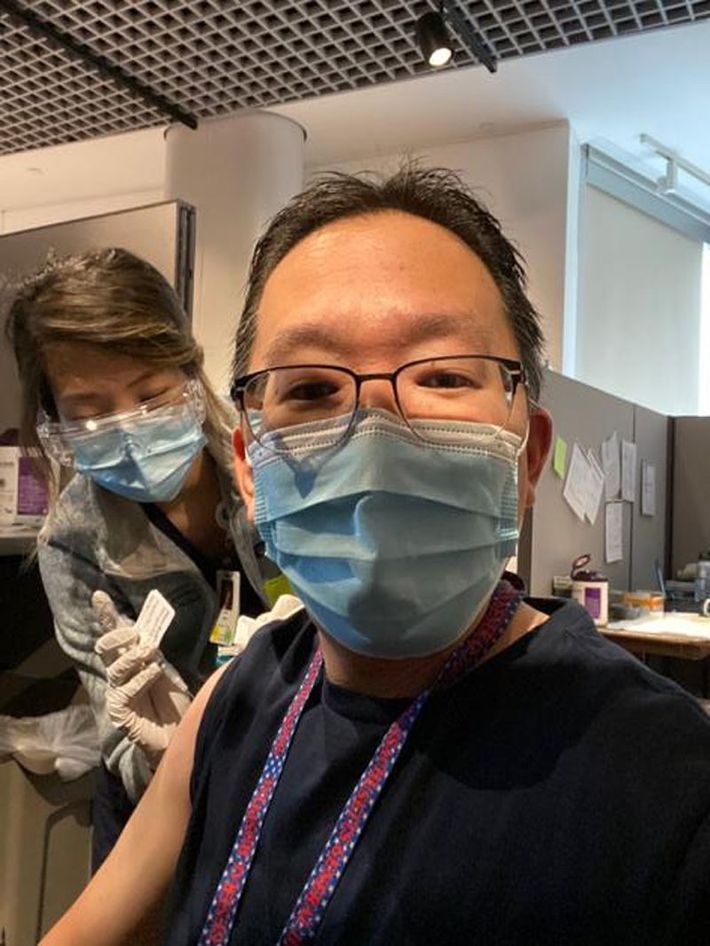 2020年12月16日にマサチューセッツ州ボストンでCovid-19ワクチンの接種を受けるMGH警察・警備担当のラリー・ワシントン氏