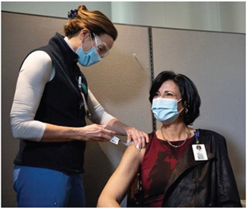 2020年12月16日にマサチューセッツ州ボストンでCovid-19ワクチンの接種を受けるMGH警察・警備担当のラリー・ワシントン氏