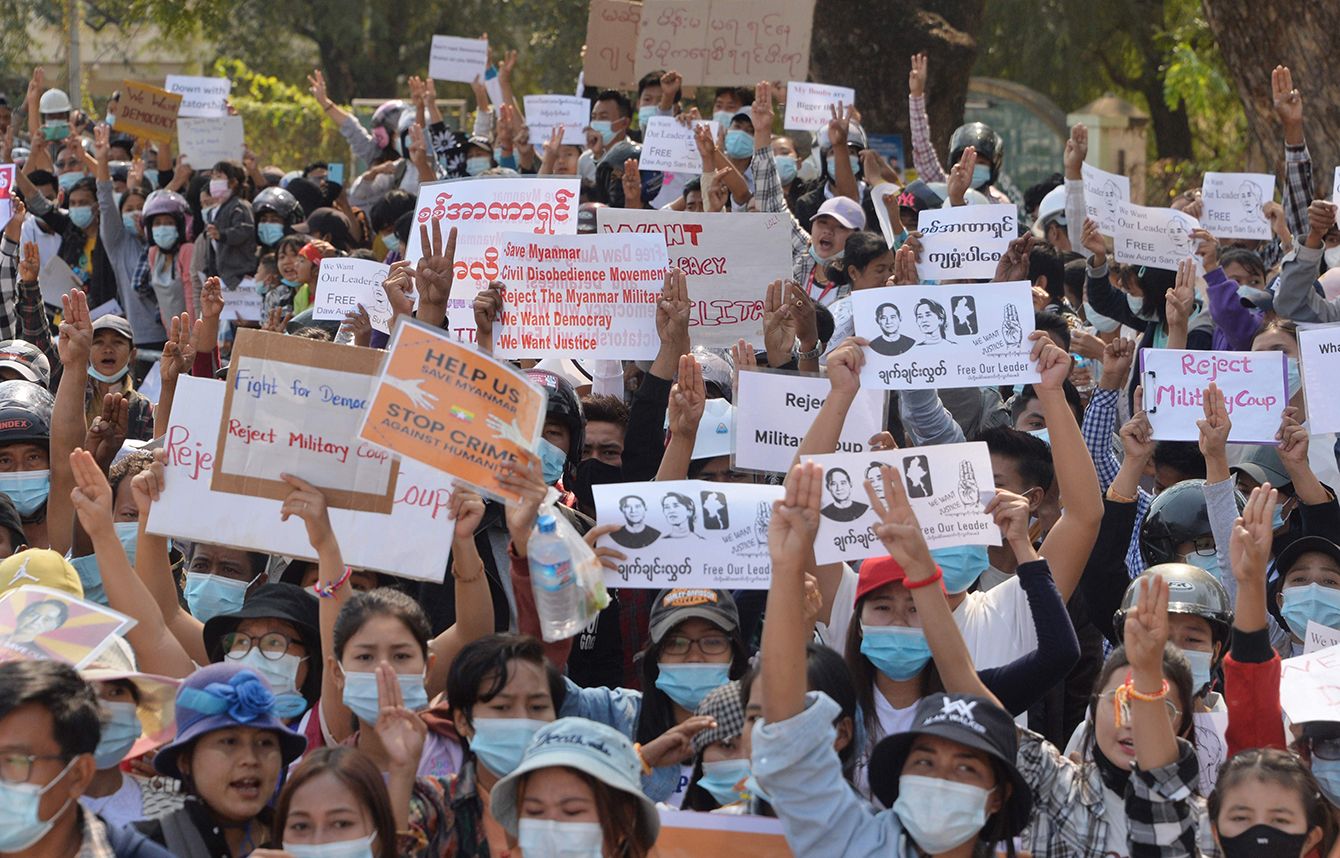 2月12日、軍事クーデターに対する大規模な抗議活動が続くミャンマーの首都ネピドー