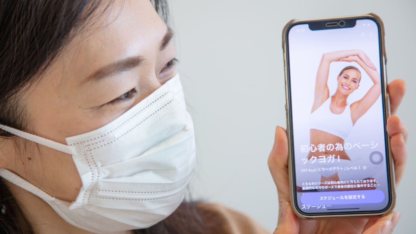 スマホのアプリを使って、「自宅ヨガ」で気分転換している。