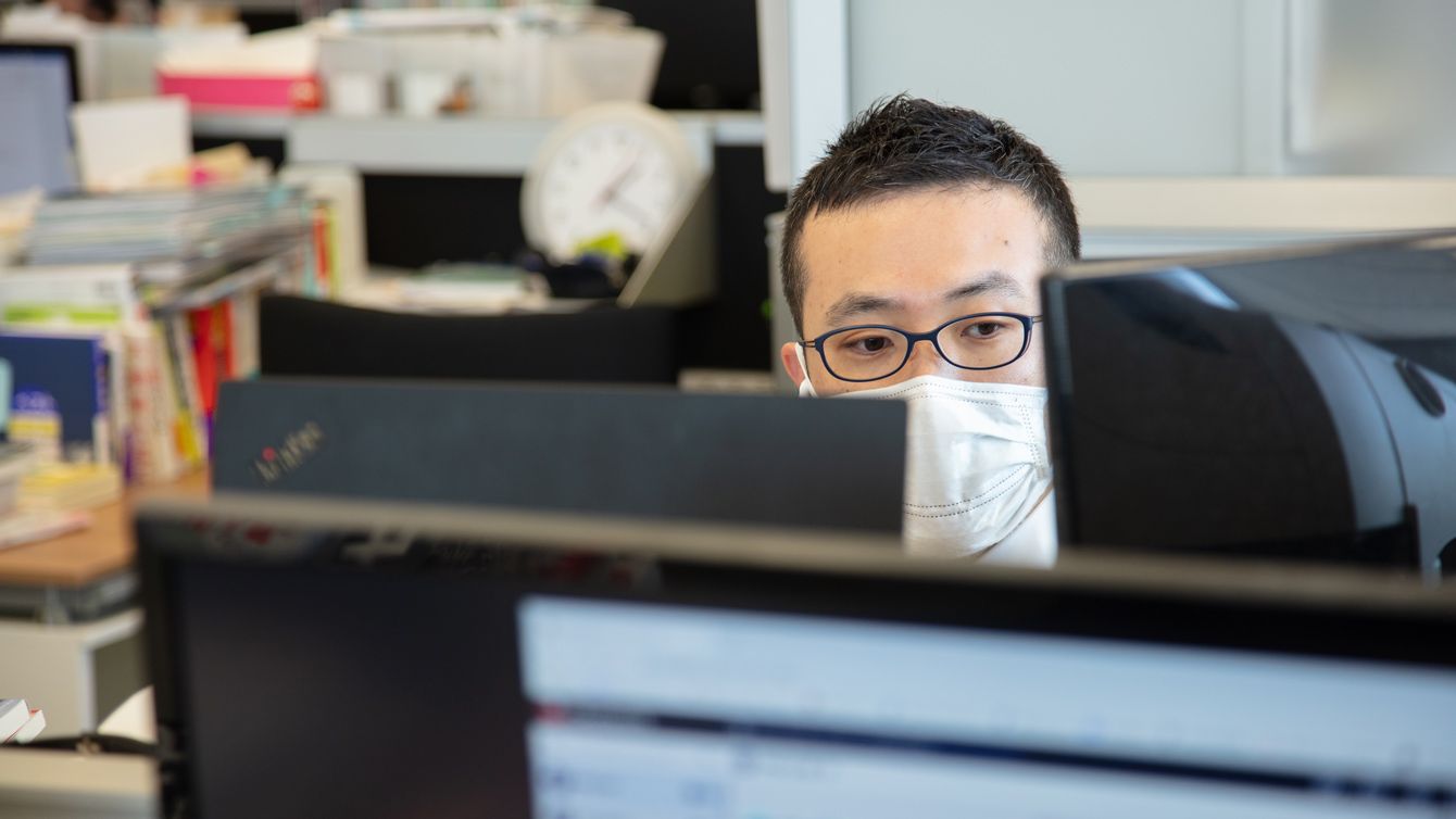 自宅でリモートワークする星野貴彦編集長