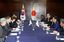 韓国の文在寅大統領(左手前から2人目)と会談する安倍晋三首相(右手前から2人目)=2019年12月24日午後、中国・四川省成都