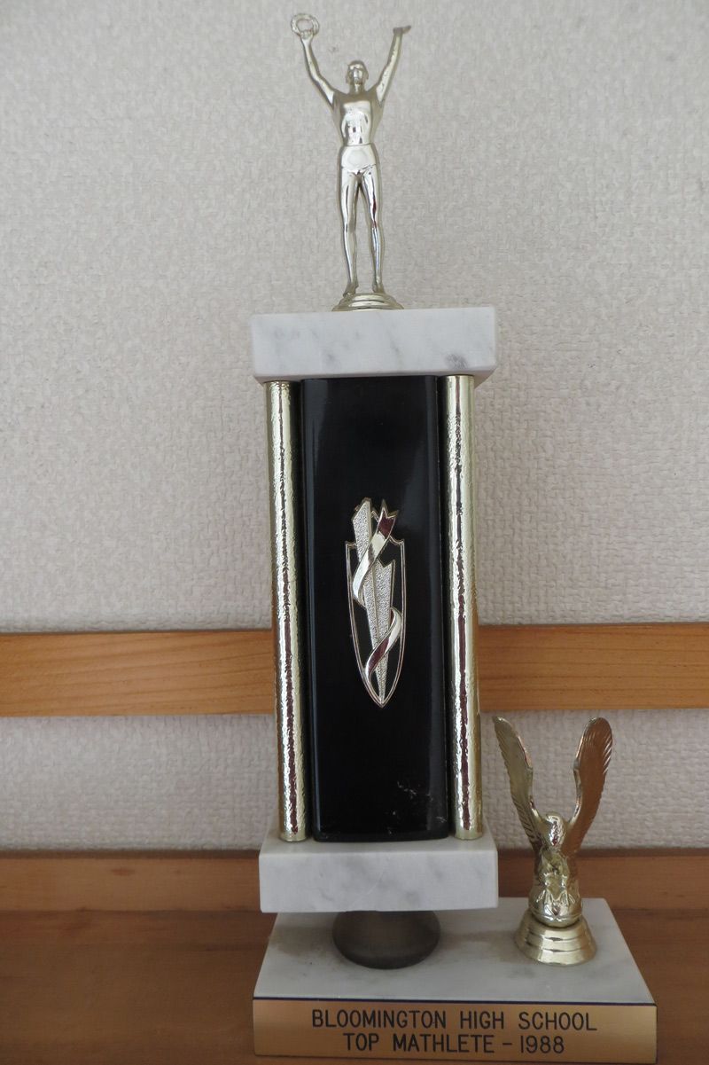 アメリカの高校で数学・物理の“無双”学生だった中川氏。当時獲得したトロフィーには「TOP MATHLETE」の文字が(著者提供)