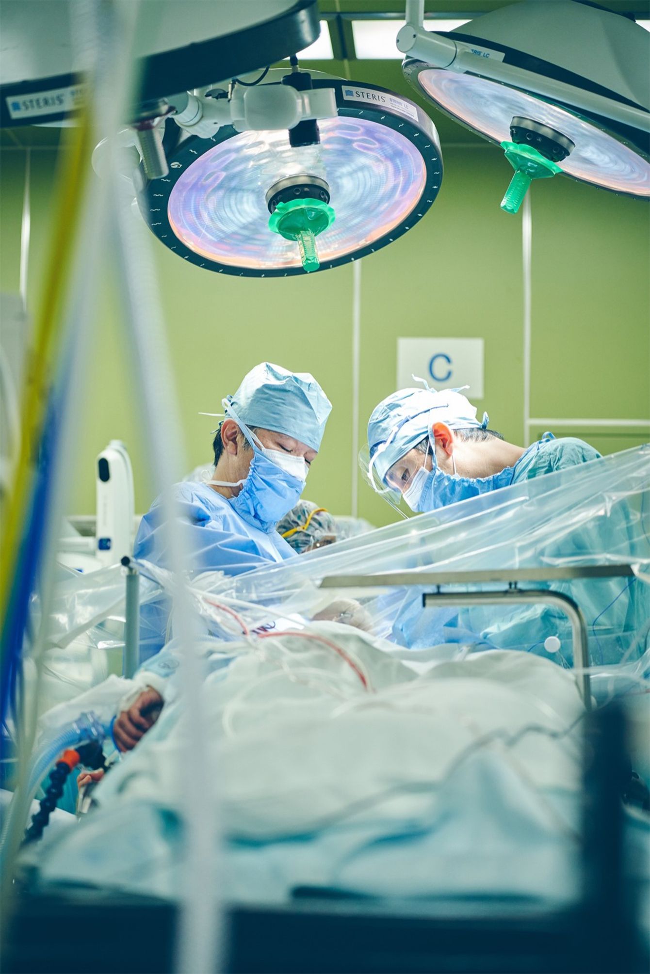 鳥取大学医学部附属病院脳神経外科の黒﨑雅道教授(写真左)。「手術しておわりではない。人とのつながりに支えられている」(撮影=中村治)