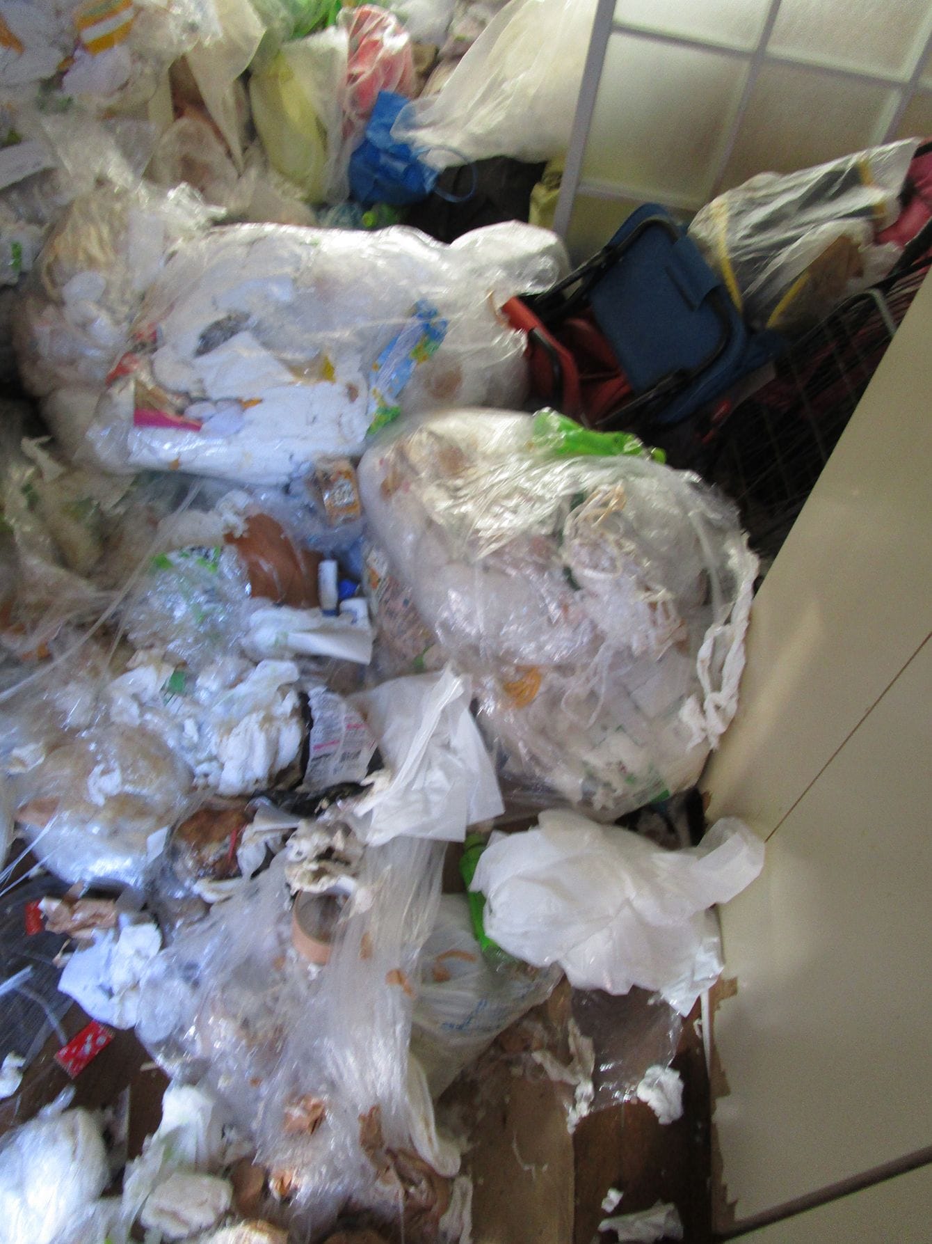 室内はゴミ袋の上にしか立てない状態