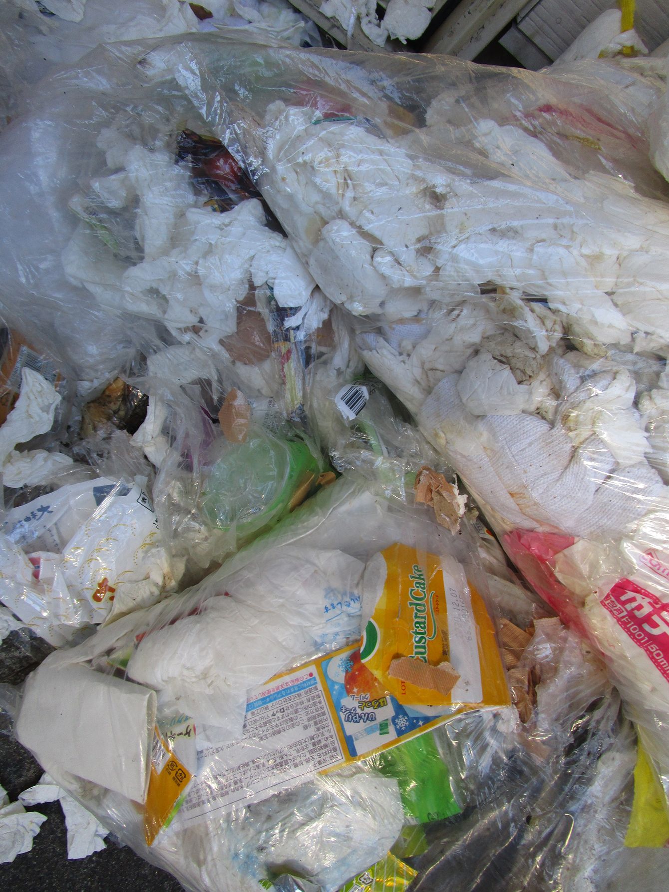 このようなゴミ袋が山積みされていた(撮影=笹井恵里子)