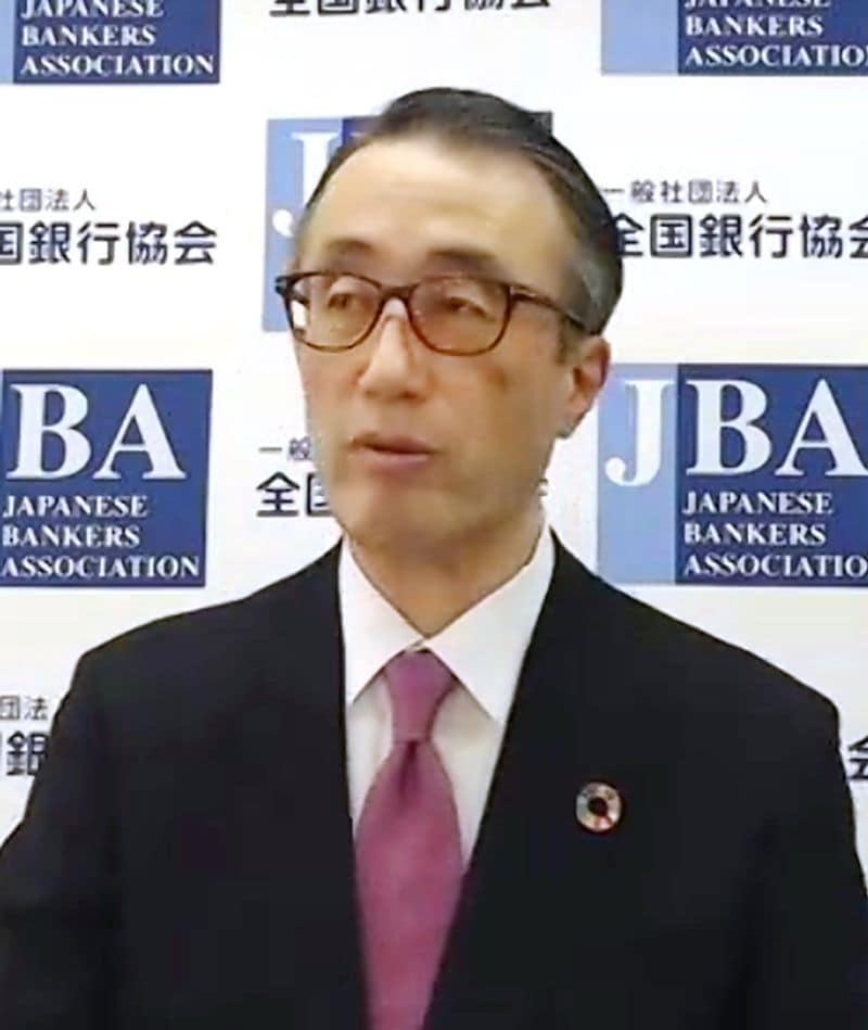 オンラインで会見する全国銀行協会の三毛兼承会長=2021年1月14日(写真=時事通信フォト)