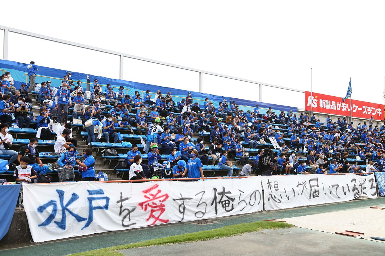 2020年10月4日、岡山戦での水戸ホーリーホックサポーター。