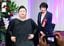 優秀なデジタルコンテンツの制作者を表彰する「デジタル・コンテンツ・オブ・ジ・イヤー’15/第21回AMDアワード」の先端科学技術賞を受賞した等身大アンドロイド「マツコロイド」(左)。右は高市早苗総務相=2016年03月14日、東京都港区