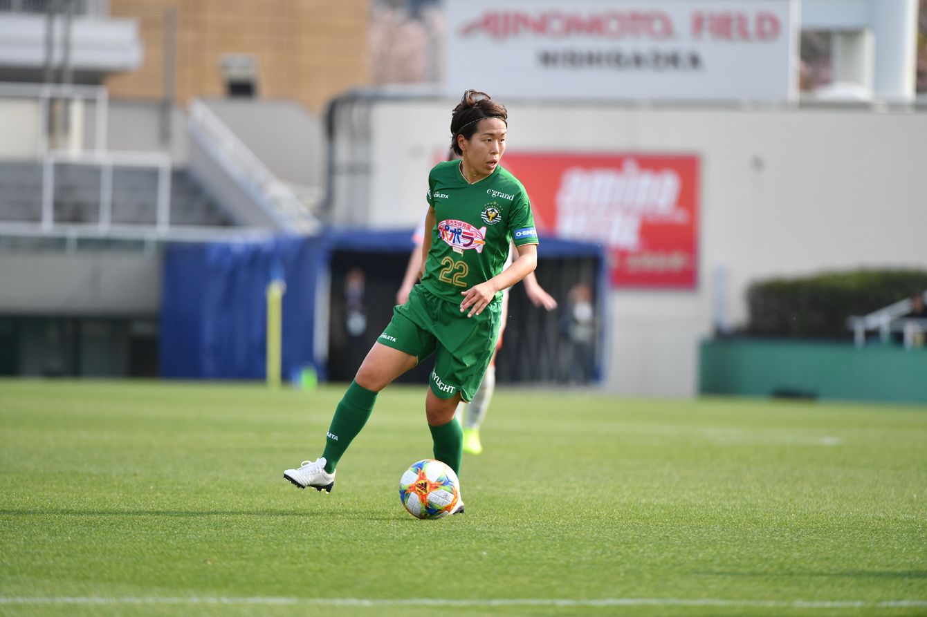 ピッチに立つ、妊娠前の岩清水選手。日テレでは日本女子サッカーリーグ(Lリーグ)通算287試合出場、21得点の記録を持つ