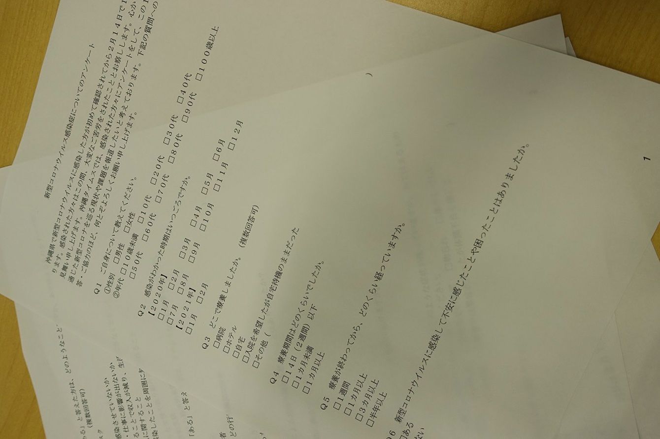 新型コロナウイルス感染を経験した人を対象にしたアンケートの回答用紙