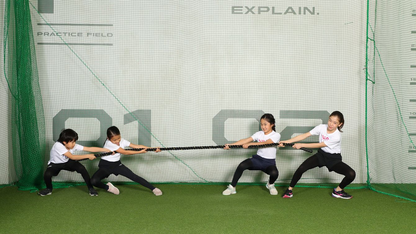 引く動作は、足腰の力を目いっぱい使います。人数がそろえば、つな引きはかなり有効なトレーニングです