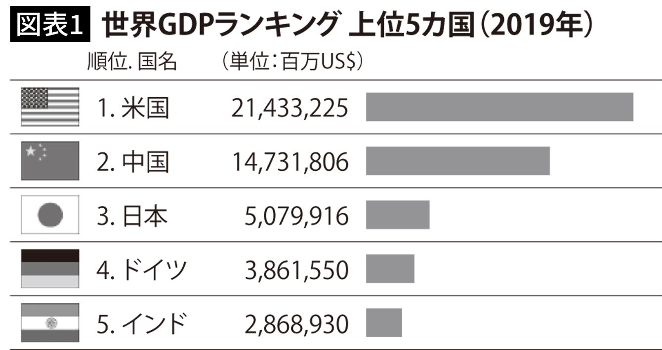 【図表1】IMF統計に基づく名目ベースのGDP〈国内総生産〉総額。米ドルへの換算は各年の平均為替レートベース(画像=『
