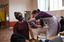 英中部シェフィールドで新型コロナウイルスのワクチン接種を受ける男性(左)=2021年02月20日、イギリス・シェフィールド