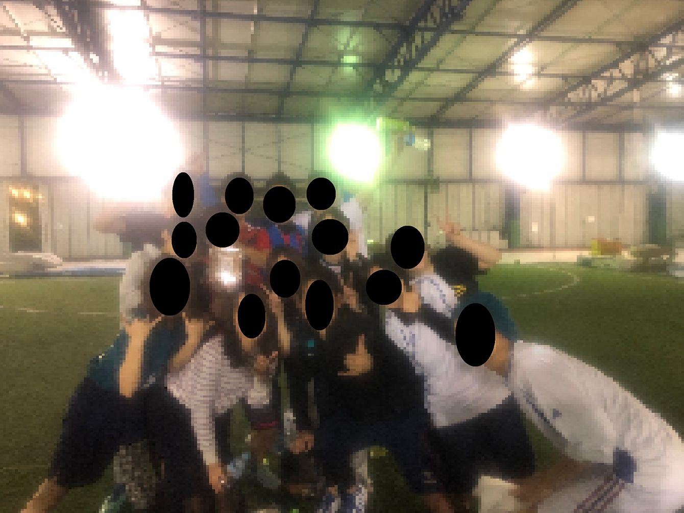 15名ほど集まったフットサルイベントの写真。男女比はほぼ1対1。スポーツが好きな友人に対しては、こういったイベントに連れ出すことで勧誘につなげていたという。こちらも提供者の希望で画像には加工を施してある