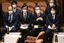 参院予算委員会に臨む(左から)谷脇康彦前総務審議官、吉田真人総務審議官、秋本芳徳前情報流通行政局長、湯本博信前官房審議官=2021年3月11日、国会内