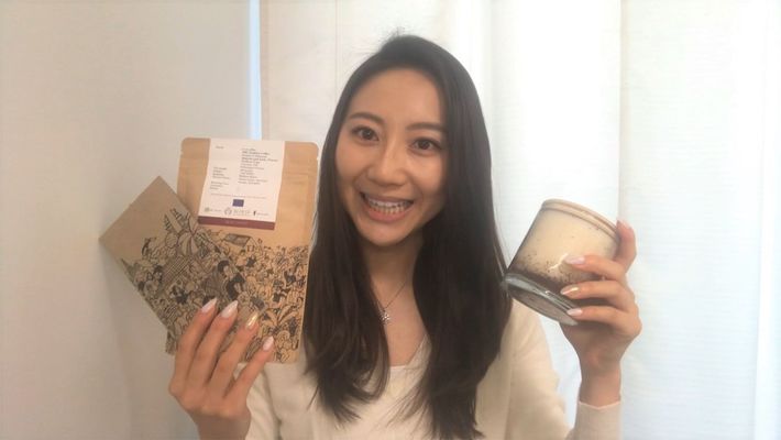 清水優紀さん。手にしているのは、支援しているインドネシアの団体su-re.coのコーヒーやキャンドル