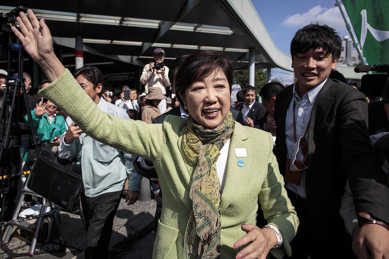 2017年10月18日、小池百合子東京都知事が支持者に挨拶。