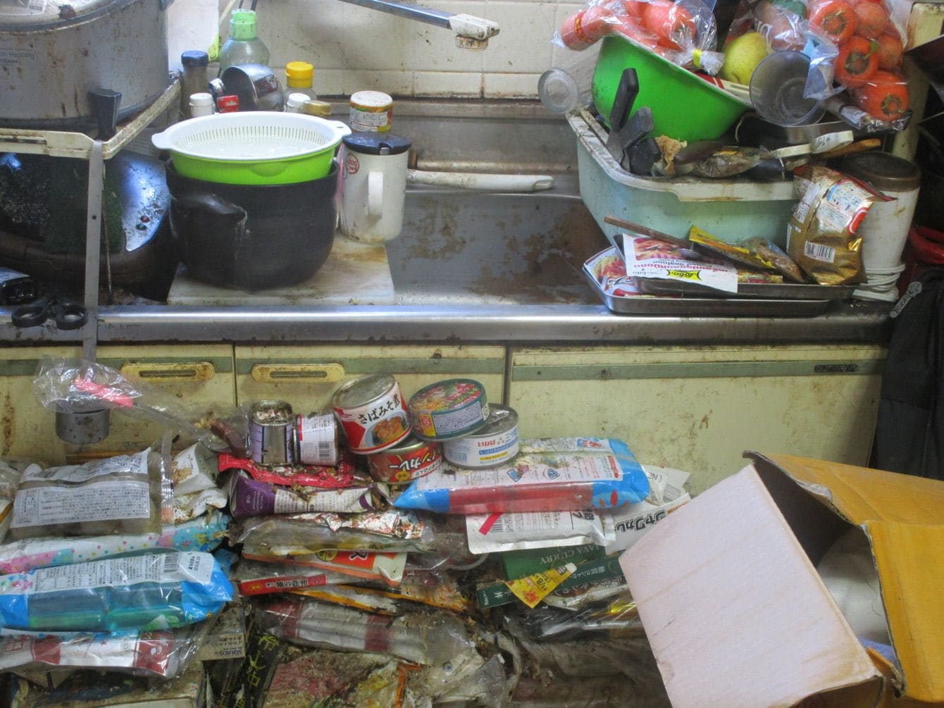 50代男性宅のキッチン。ゴミに埋まって使えなくなっていた。