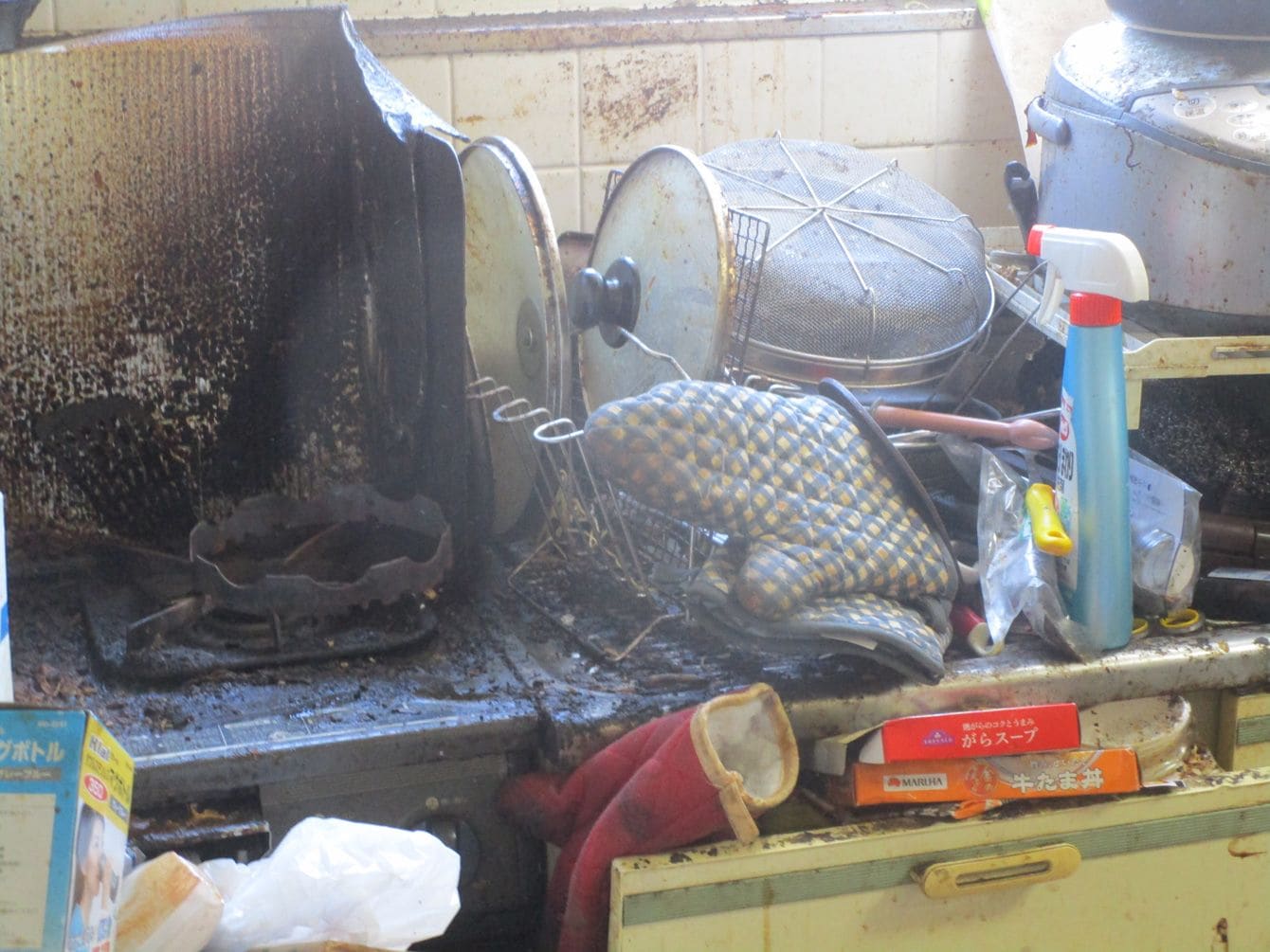 50代男性宅のキッチン。ゴミに埋まって使えなくなっていた。