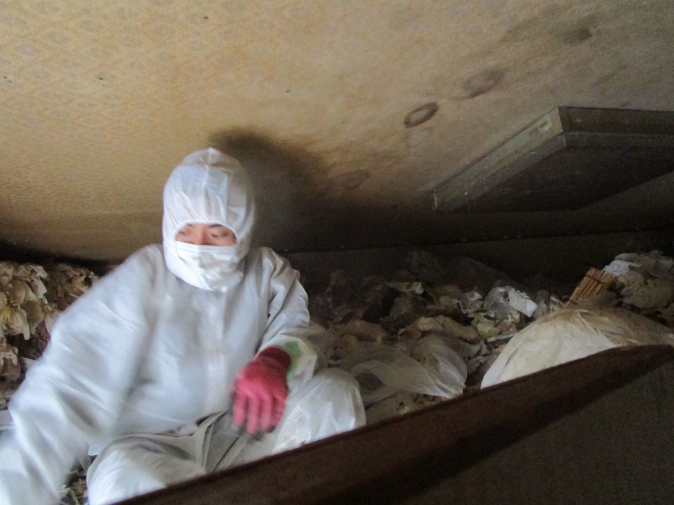 あんしんネットが手がけた作業現場。床の上にゴミが積み上がっている。(写真提供=あんしんネット)