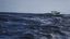 2006年10月22日、香港の船上でスローガンを叫び、中国の国旗を振る活動家たち。横断幕には「日本は釣魚島から出て行け」と書かれている。