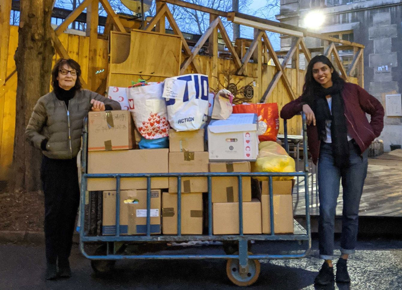 は、フランスで初めて生理の貧困に取り組み始めた市民団体。手前の赤い箱で、新品の生理用品の寄付を募っている