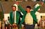 米ジョージア州オーガスタで行われたマスターズゴルフトーナメント終了後、グリーンジャケットを受け取る松山英樹選手