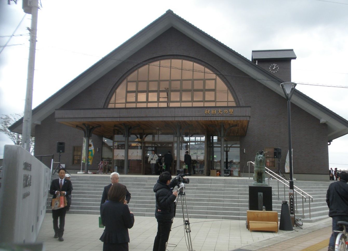 JR大館駅前にオープンした観光交流施設「秋田犬の里」。忠犬ハチ公が上野博士を待ち続けた戦前の渋谷駅がモデル。