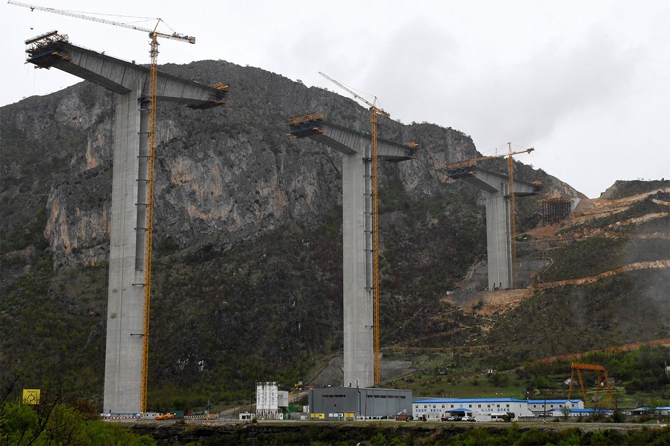 モンテネグロの首都ポドゴリツァの北にあるビオチェ村の近くで、中国の大手国有企業が建設を進めている=2019年4月8日