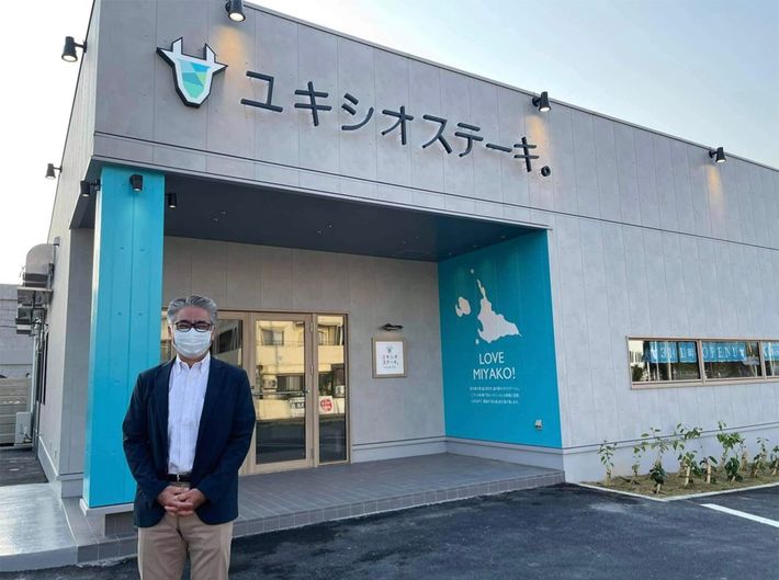 宮古牛を中心に、島の食材を使い「雪塩」で食する鉄板焼きレストラン「ユキシオステーキ」をオープンしたパラダイスプランの西里長治社長=宮古島市平良