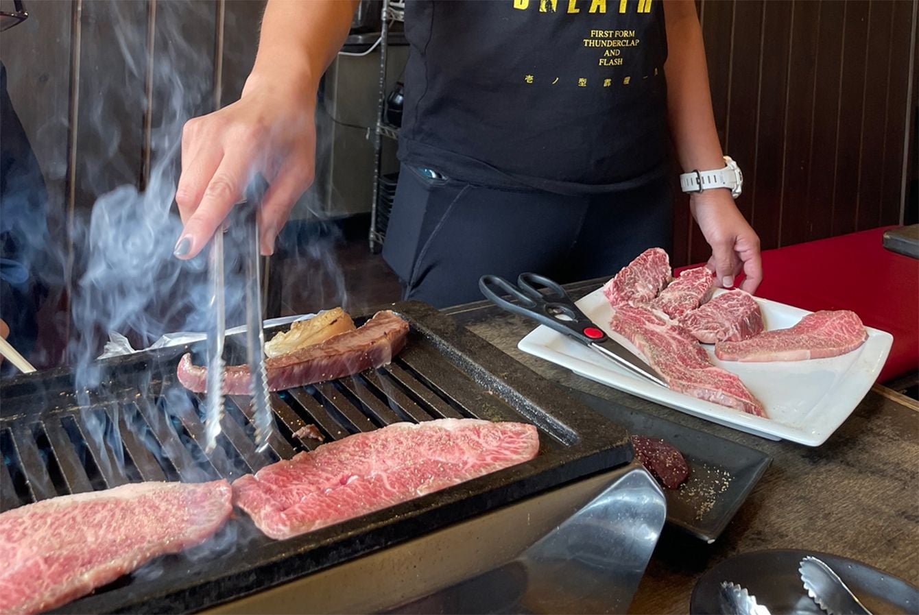 ゆいまーる牧場で生産した「KINJO BEEF」を提供する石垣牛専門店「焼肉金城」=2月15日、石垣市内