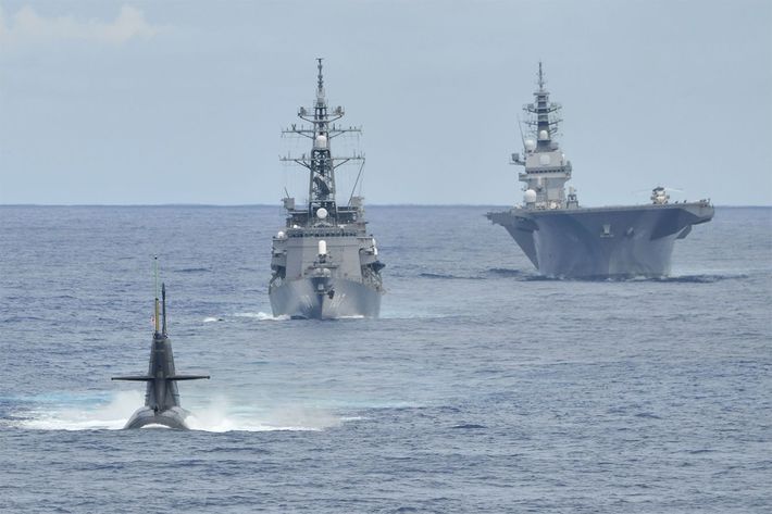 令和2年度インド太平洋派遣部隊の訓練に参加した潜水艦「しょうりゅう」(左)