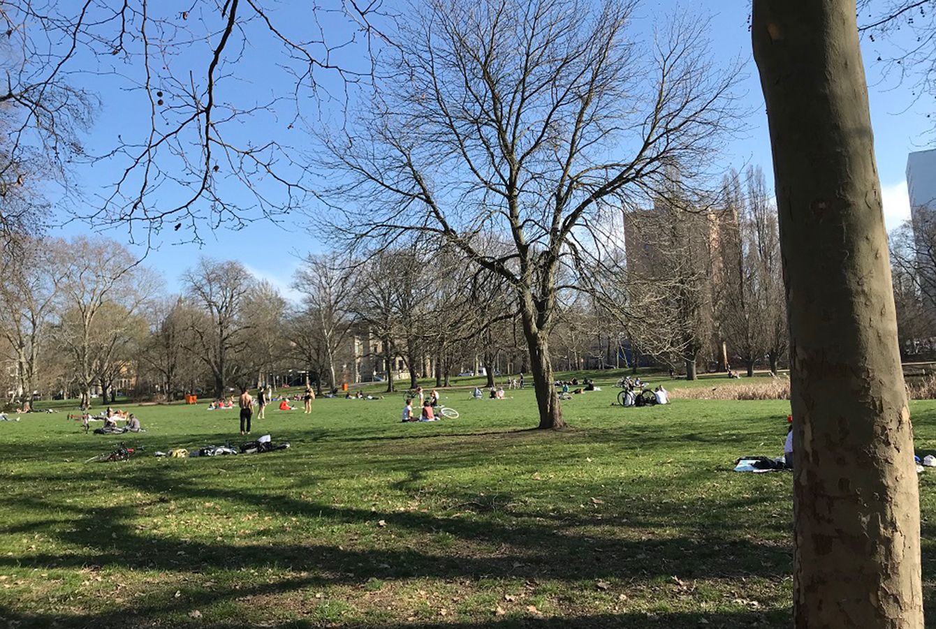 今のドイツで明るい表情の人がいるのは緑の中だけだ(4月、ライプツィヒ市内)