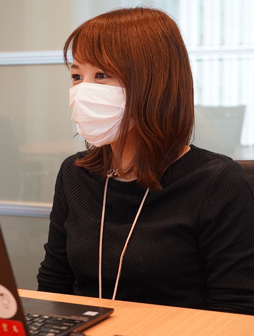 マーケティング部の東奈央さん(※食品開発本部カカオ開発部の宮崎翔太さんはオンラインで参加)(撮影=プレジデントオンライン編集部)