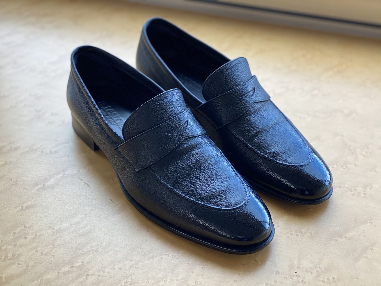 磨き終えた靴。鏡面磨きで靴に光沢が生まれている