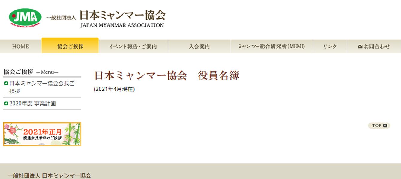 前回の記事が出る前のミャンマー日本協会の役員一覧