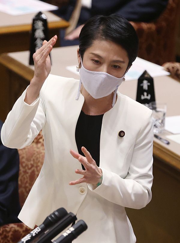 参院予算委員会で質問する立憲民主党の蓮舫代表代行=2020年11月5日、国会内(写真=時事通信フォト)