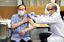新型コロナウイルスのワクチン接種を受ける菅義偉首相=2021年3月16日、東京都新宿区の国立国際医療研究センター
