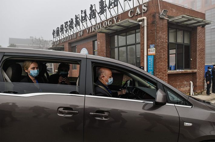 中国湖北省武漢市のウイルス研究所に到着した世界保健機関(WHO)調査団(中国・武漢)=2021年2月3日