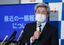 定例記者会見で、自民党議員の政治資金パーティーに参加していたことについて説明する日本医師会の中川俊男会長=2021年5月12日、東京都文京区(写真=時事通信フォト)