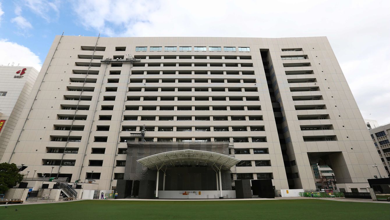 福岡市役所=2015年1月7日、福岡市中央区(裏面)