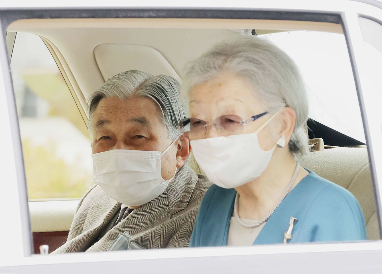 皇居に入られる上皇ご夫妻=2021年4月27日午後、皇居・乾門(写真=時事通信フォト)