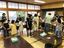 バイキング形式に並べられた食事を受け取っていく参加者たち。2019年に撮影。