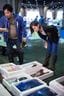 マグロの解体ショーを行う森朝奈さん(右)と父・嶢至さん(左)=2019年撮影