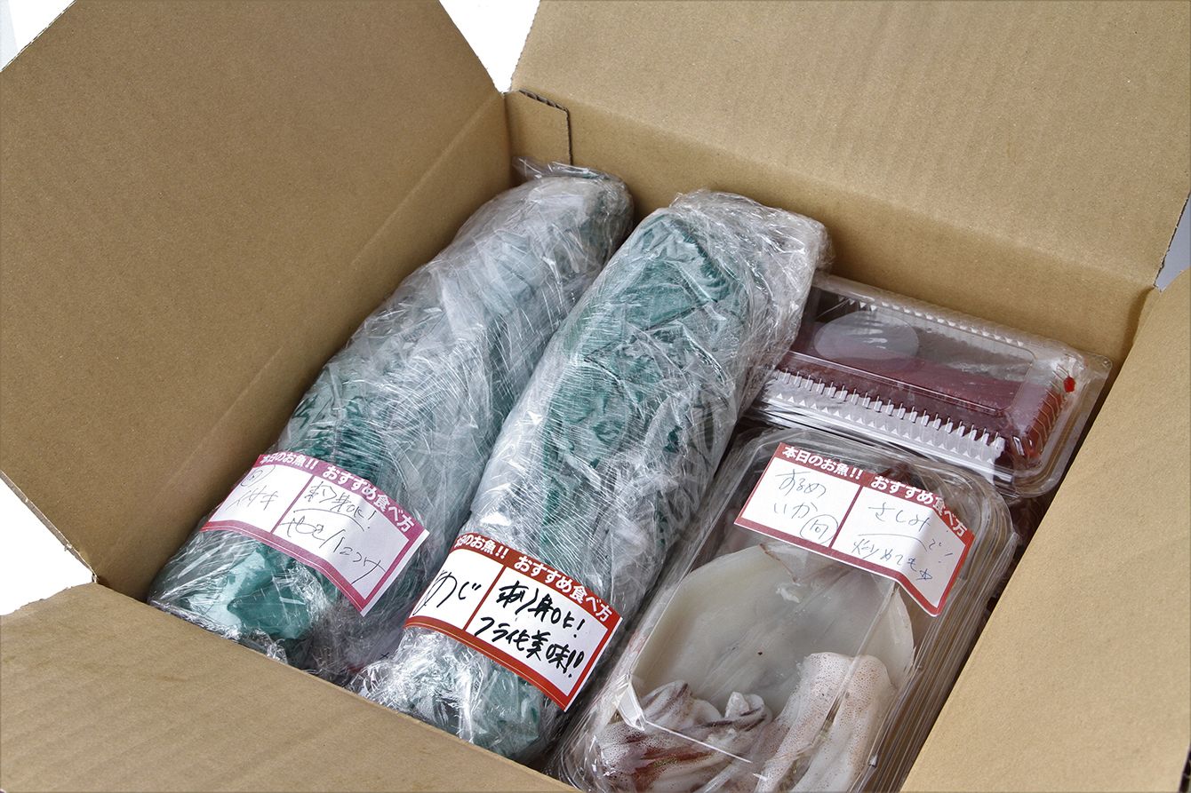 「おまかせ鮮魚BOX」の一例。魚は下処理が済んだ状態で、お勧めの食べ方なども記されている(写真=森朝奈さん提供)