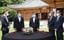 ソウルの韓国大統領府で、文在寅大統領(中央)と面会するサムスン、現代自動車など4大財閥の代表(韓国・ソウル)=2021年6月2日