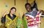 河野リエさん(右)。2019年4月ごろナイロビのマサイマーケットで。当時アフリカ布ピアスを製作してくれていたドロシーさんと