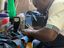 シャツを製作中のテーラー、ジョセフさん 写真=河野リエさん提供